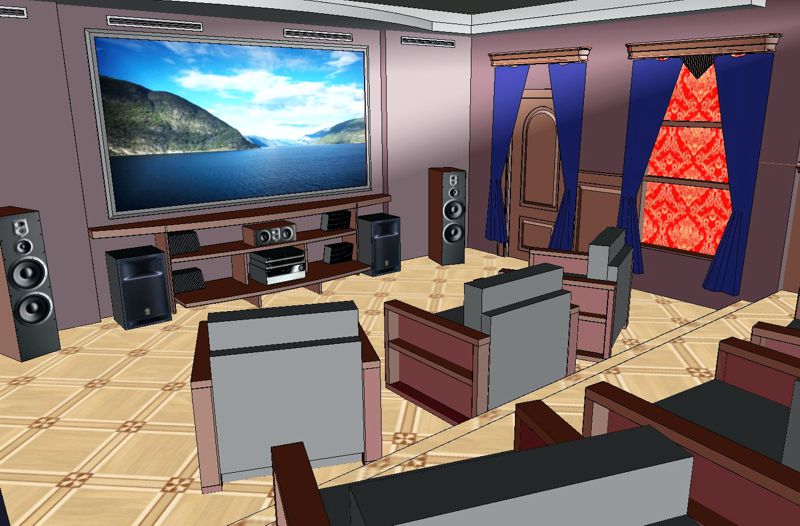 | Зображення домашнього кінотеатру може формуватися за допомогою телевізора або проектора. Враховуючи той факт, що максимальний розмір діагоналі екрану серійного сучасного телевізора не перевищує 100 дюймів, то зазвичай в кінотеатрах застосовуються проектори. Останні забезпечують будь-який розмір зображення. Розмір екрану домашнього кінотеатру підбирають виходячи з умови забезпечення оптимального кута зору (45-700). Ця ж умова і диктує відстань від глядачів до екрану. | |||
